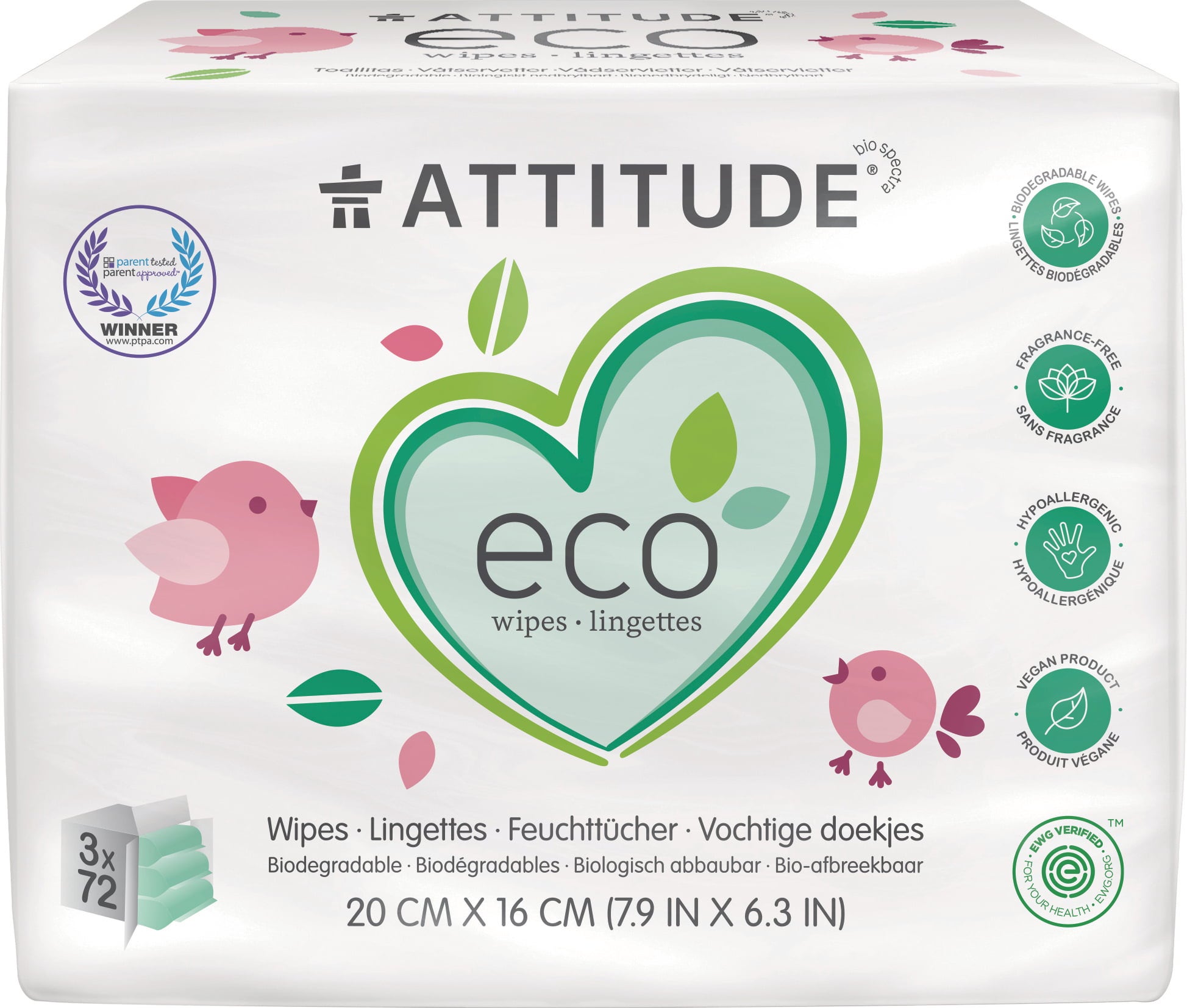 Az Attitude nedves törlőkendő biológiailag fenntartható cellulóz szálakból készül és szintetikus illatanyag mentes. Rendkívül bőrbarát és biológialilag lebomló.
