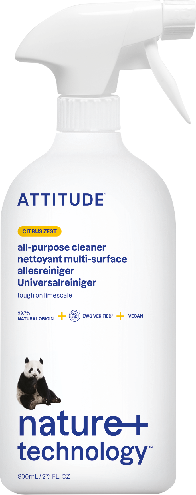 Az ATTITUDE univerzális tisztítószere természetes összetevőket használ a felületek tisztítására az egész háztartásban.