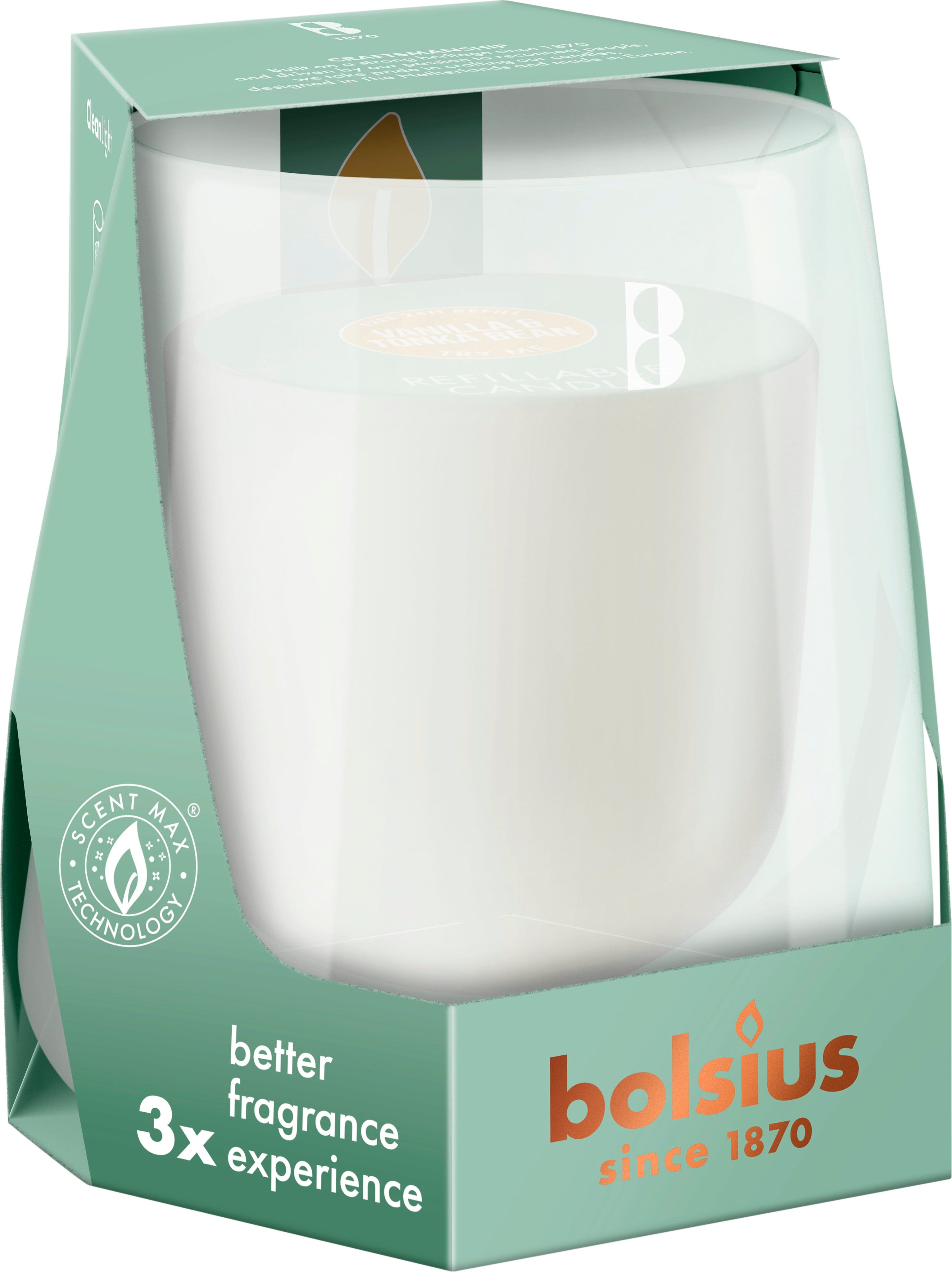 A Bolsius CleanLight kezdőszettje egy szájjal fújt üvegtartót és egy gyertyát tartalmaz, amelyet a leégése után könnyen kicserélhet egy megfelelő CleanLight utántöltő gyertyára. A ScentMax technológiának köszönhetően a gyertya jobb illatélményt nyújt. A gyertya úgy van kialakítva, hogy teljesen leégjen anélkül, hogy egyetlen viaszcsepp is maradna az üvegben, akár 24 órán át ég, és 50%-ban növényi viaszból készül.
