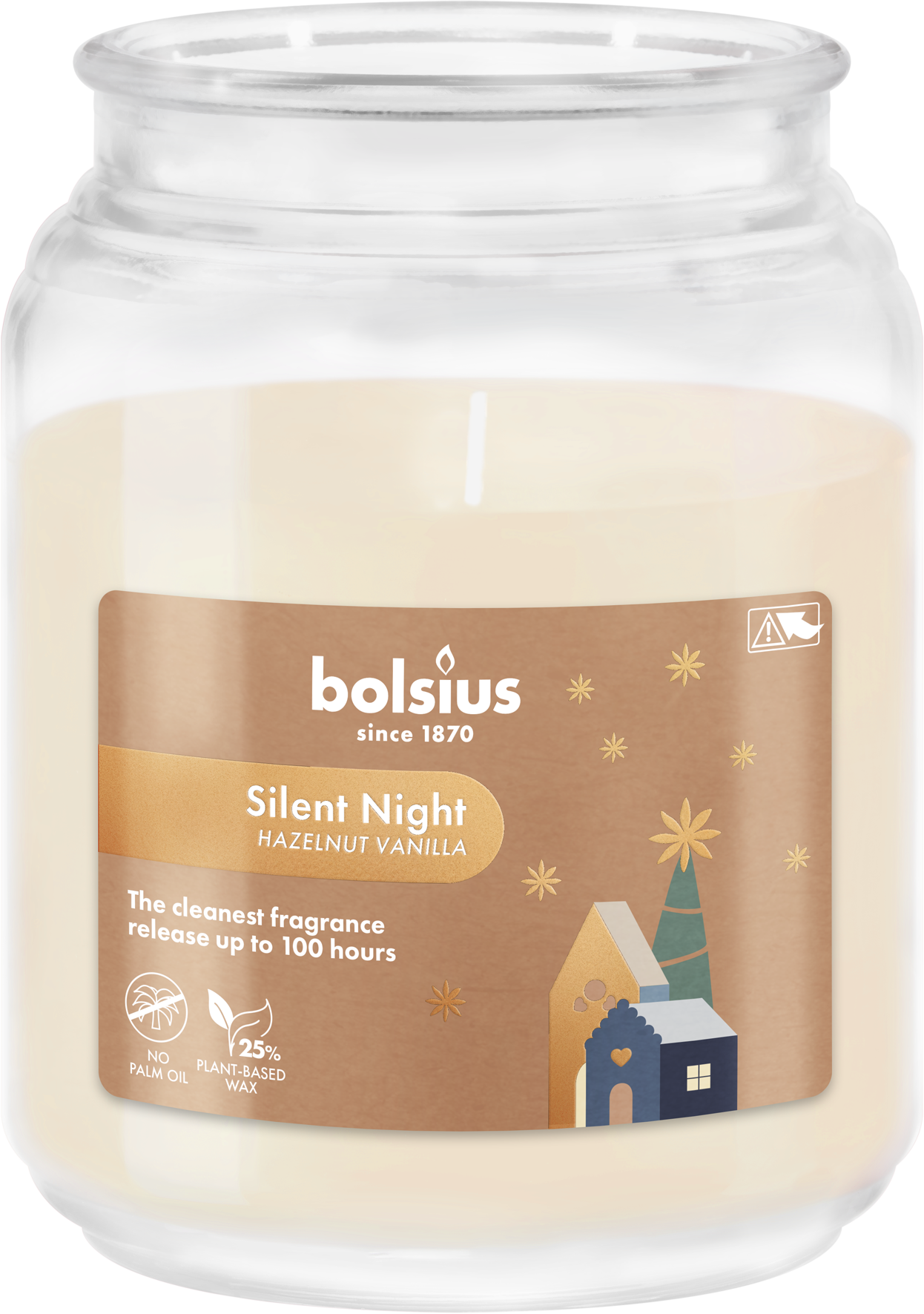 A Bolsius Csendes Éj illatgyertyája gyengéd mogyoró, pörkölt mandula és vanília illatjegyeivel varázsol el. A meleg, télies illat azonnal meghitt hangulatot teremt otthonában. A gyertya természetes kivonatokkal gazdagított és nem tartalmaz pálmaolajat.