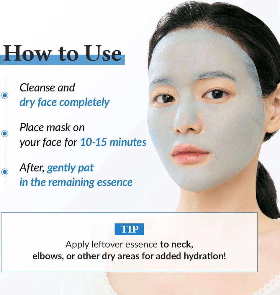 Alkalmazás: | Helyezze a szövetmaszkot megtisztított arcára. 10-15 perces hatóidő után távolítsa el a maszkot, és finoman masszírozza el a mardványt. Ezután használja a megszokott arcápolót. |