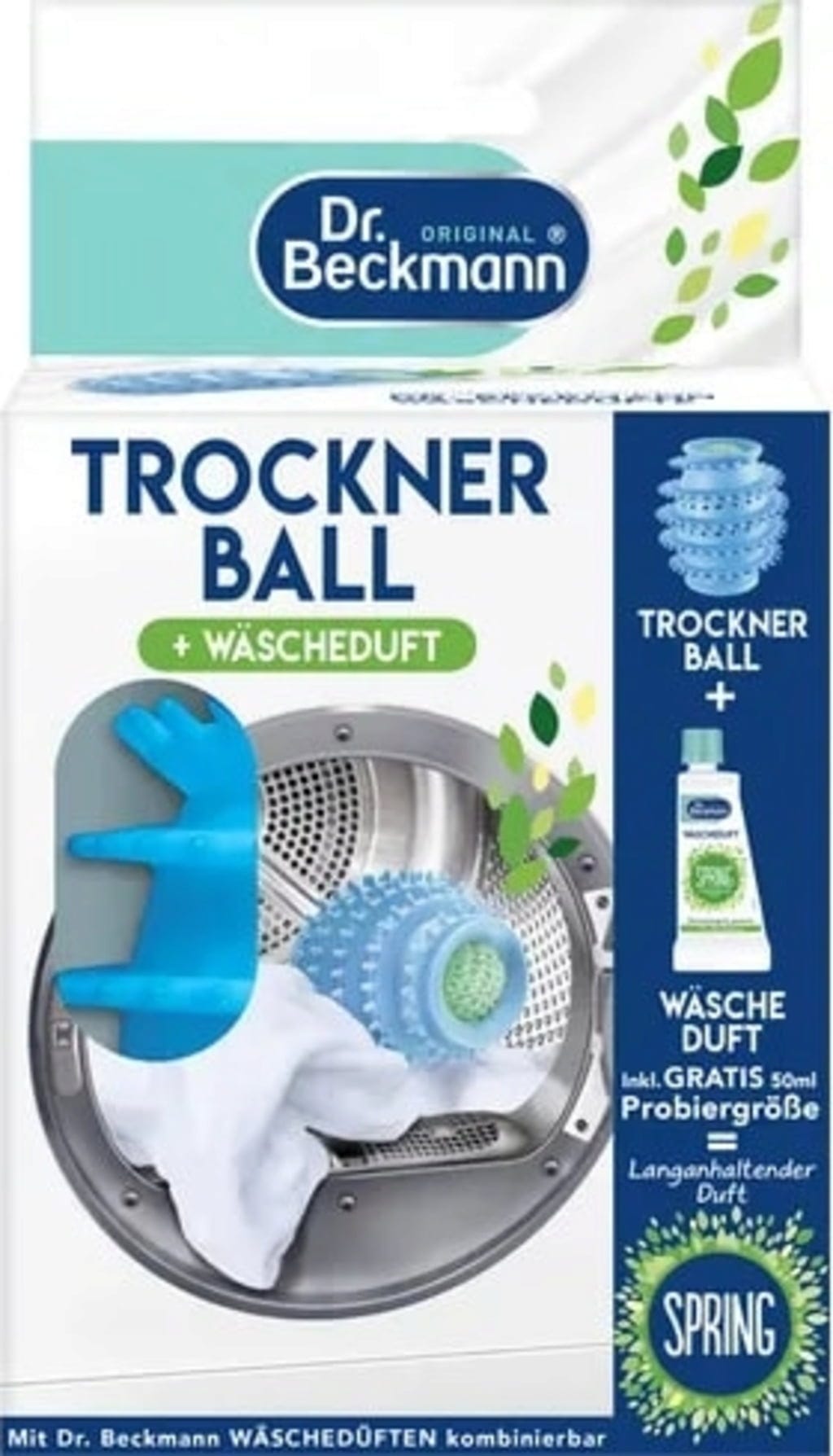 A csomag tartalmazza továbbá a Dr. Beckmann Spring mosóparfüm próbaméretét (50 ml). Ez egyszerűen a szárítólabdába tölthető, így csodálatosan friss illatot kölcsönöz a ruháknak!