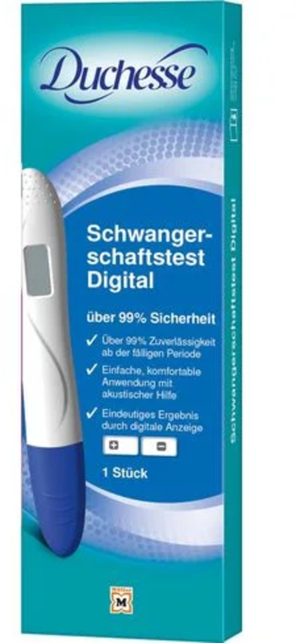 A Duchesse digitális terhességi teszt 99%-os biztonságot nyújt a terhesség megállapításához, az eredményt pedig 3 percen belül egy digitális kijelzőn mutatja meg.