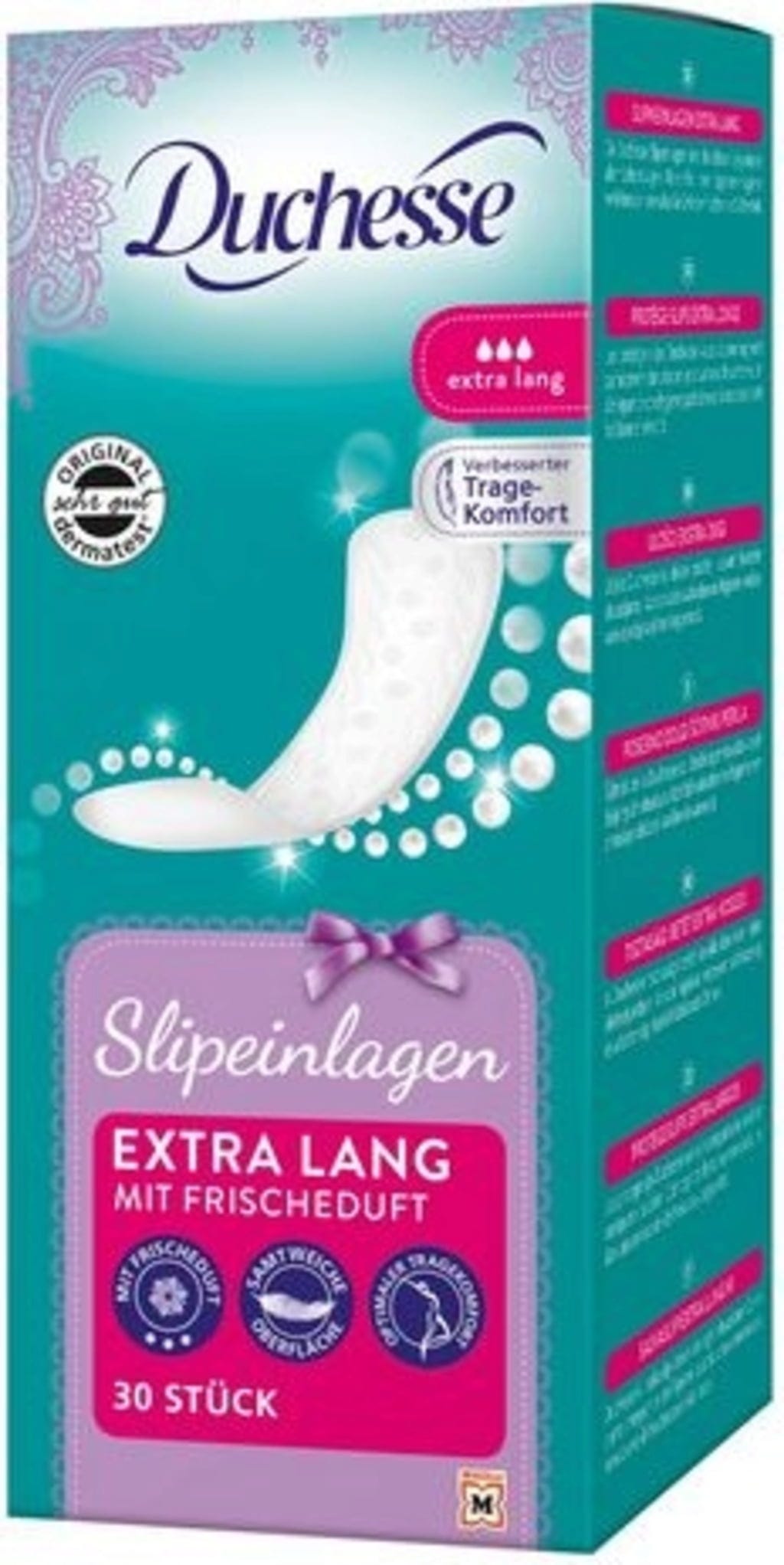 A Duchessen extra hosszú tisztasági betétei minden helyzetben biztonságérzetet nyújtanak – enyhe vizelettartási panaszok esetén is. A friss illat 100%-os szagvédelmet biztosít.