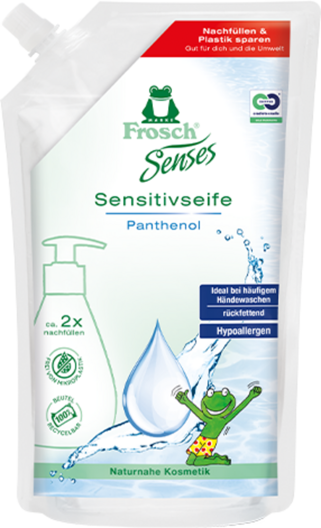 Ezzel a Frosch szappan utántöltővel nemcsak a kézmosószappan-készletet növeli, hanem a csomagolási hulladékon is spórol!