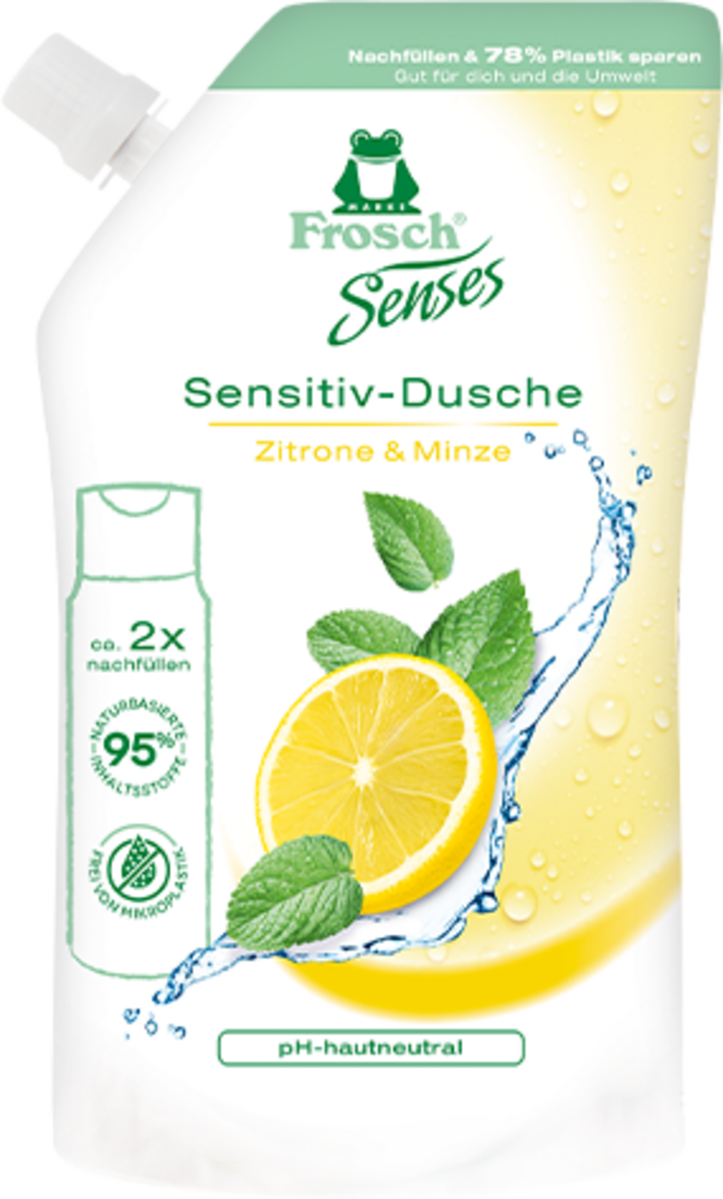 Frosch Senses Sensitive tusfürdő - Citromillatú menta, 500 ml-es utántöltő tasak