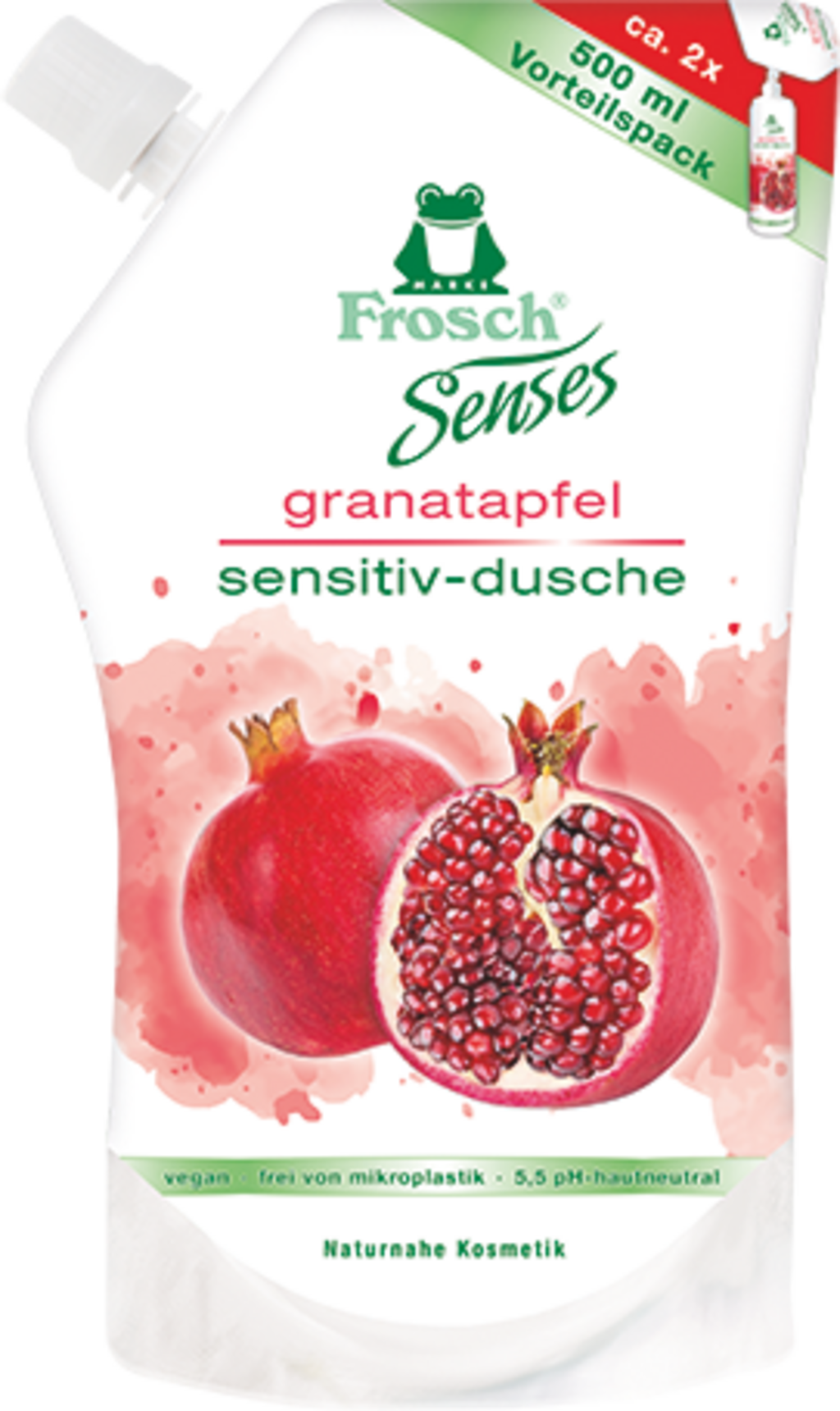 Frosch Senses Sensitive tusfürdő - Gránátalma, 500 ml-es utántöltő tasak