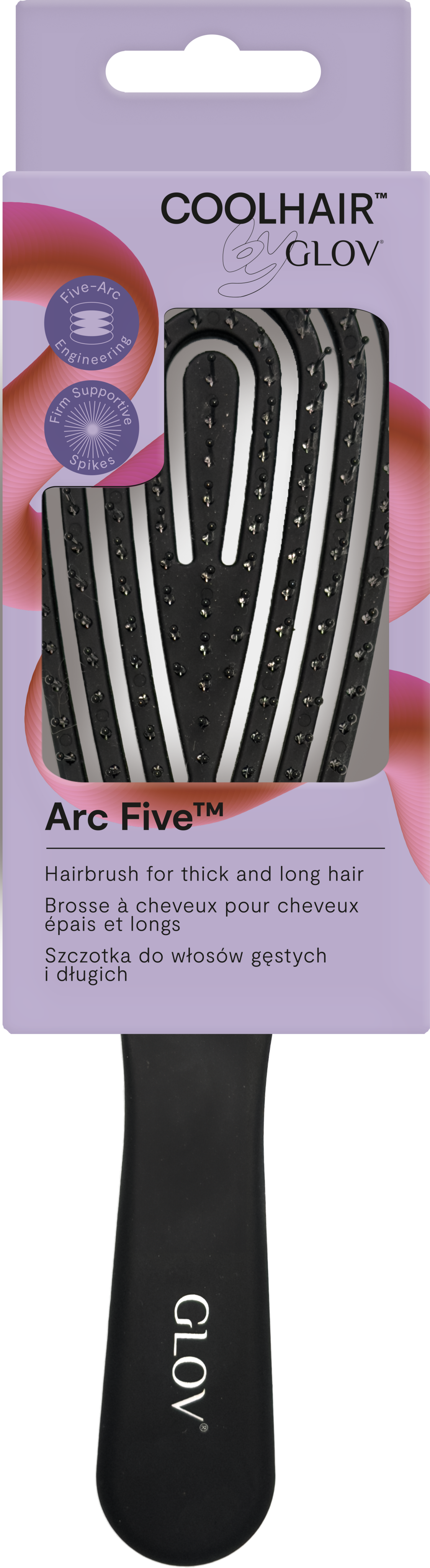 Az innovatív Arc Five™ hajkefe úgy lett kifejlesztve, hogy precízen és könnyedén tudjon siklani a hajon. Egyedülálló five-arc szerkezete könnycsepp alakot formáz, amely növeli a stabilitást, és lehetővé teszi, hogy a kefe minden egyes simításnál simán mozogjon. Kiváló minőségű, stabil tűinek köszönhetően átjárja a sűrű hajat, és alulról megtámasztja azt, hogy megakadályozza a rángatást, tépést vagy törést. Ezáltal ez a kefe ideális hosszú, vastag vagy könnyen gubancolódó hajhoz, valamint kiegyensúlyozott fésülési élményt nyújt, amely egyszerre érződik erőteljesnek és gyengédnek. Az ergonomikus forma biztos, kényelmes tartásról és teljes kontrollról gondoskodik - legyen szó kibogozásról, simításról vagy mindennapos formázásról.