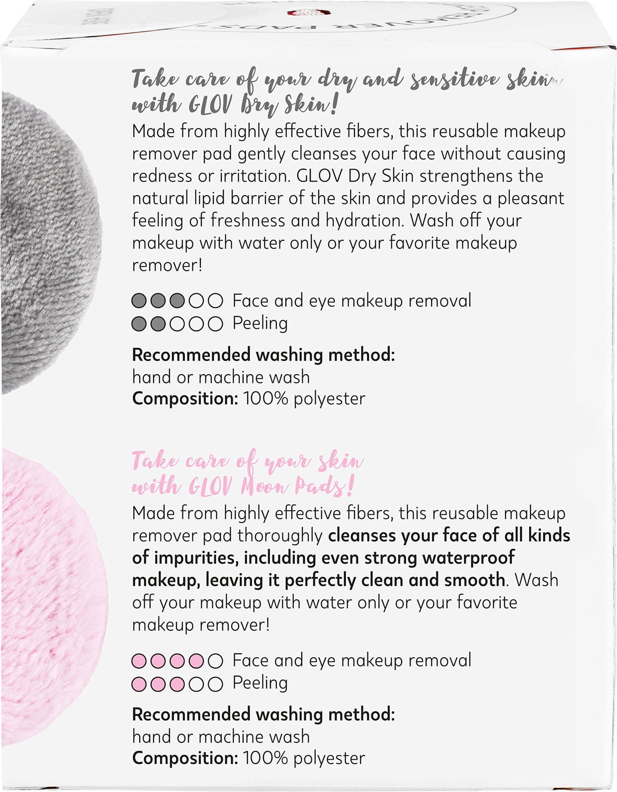 - Dry Skin Pads: A száraz és érzékeny bőr hálás lesz az irritáció mentes, kíméletes tisztításnak a puha szürke rostok által.