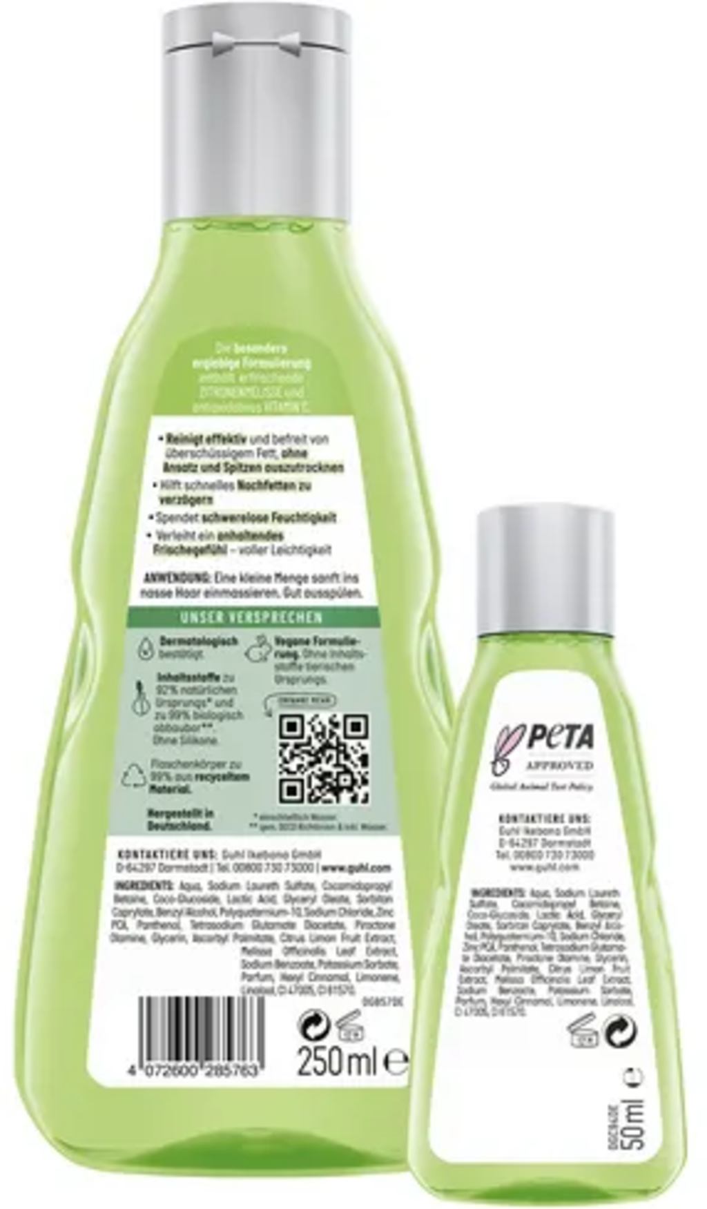 Ez a sampon természetes citromfűvel tisztítja a hajat, és csodálatosan friss hajérzetet biztosít a hajtövektől egészen a hajvégekig. Hatékonyan tisztítja a fejbőrt és a hajat anélkül, hogy kiszárítaná azokat, így optimális választás a gyorsan zsírosodó hajtövek esetén.