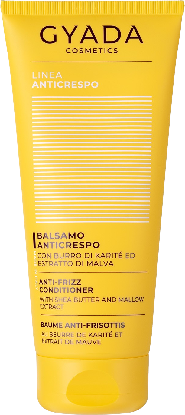 A GYADA Cosmetics Anti-Frizz-kondicionáló a száraz, igénybevett és kezelt haj gyengéd ápolója. A kondicionáló növényi olajok, shea vaj, mályva kivonat, valamint hidrolizált búza- és szójafehérje keverékét tartalmazza. Összetevői által javító és regeneráló hatású, valamint lágyságot és rugalmasságot biztosít.