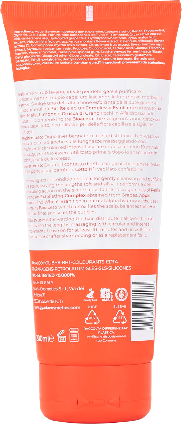 Ez a co-wash különösen gyengéden tisztítja a hajat, átmossa a fejbőrt, és selymesen puha hajvégeket biztosít. A perlitből, szőlőből, almából, citromból és búzakorpából álló gyengéd összetétel nagyon kíméletesen hámlasztja a fejbőrt hajmosás közben. A bioecetet és poliszacharidokat tartalmazó kiegyensúlyozott receptúra biztosítja a fejbőr természetes egyensúlyát és megakadályozza a felesleges faggyú és korpásodás kialakulását. Szőlőlé és fermentált rizsvíz egészíti ki az összetételt, melyek hatékonyan ellátják a hajat nedvességgel és csökkentik a göndör hajra jellemző "szöszösödést".