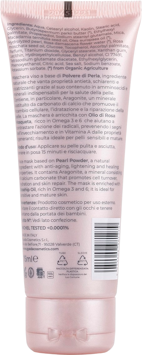 Ezen arcmaszk fő összetevője az értékes gyöngypor, mely gazdag anti-aging hatóanyagokban, például aminosavakban, ásványi anyagokban, valamint regeneráló és hidratáló aragonitban. Receptúrája vadrózsaolajat is tartalmaz, mely különösen gazdag A-vitaminban, valamint omega-3 és -6 zsírsavakban, így optimálisan ellensúlyozza a bőröregedés jeleit. Gyengéd összetételének köszönhetően a maszk tökéletes érzékeny és érett bőrre.