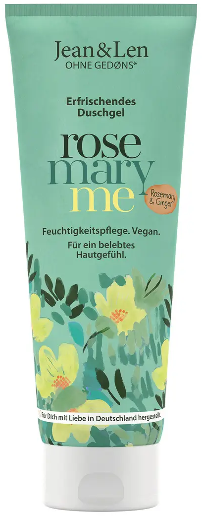 A Jean&Len vegán, frissítő rozmaring és gyömbér tusfürdője E-vitaminnal, rozmaringgal és gyömbérkivonattal táplálja a bőrt zuhanyzás közben. Szilikonmentes és csodálatos hidratálást biztosít.
