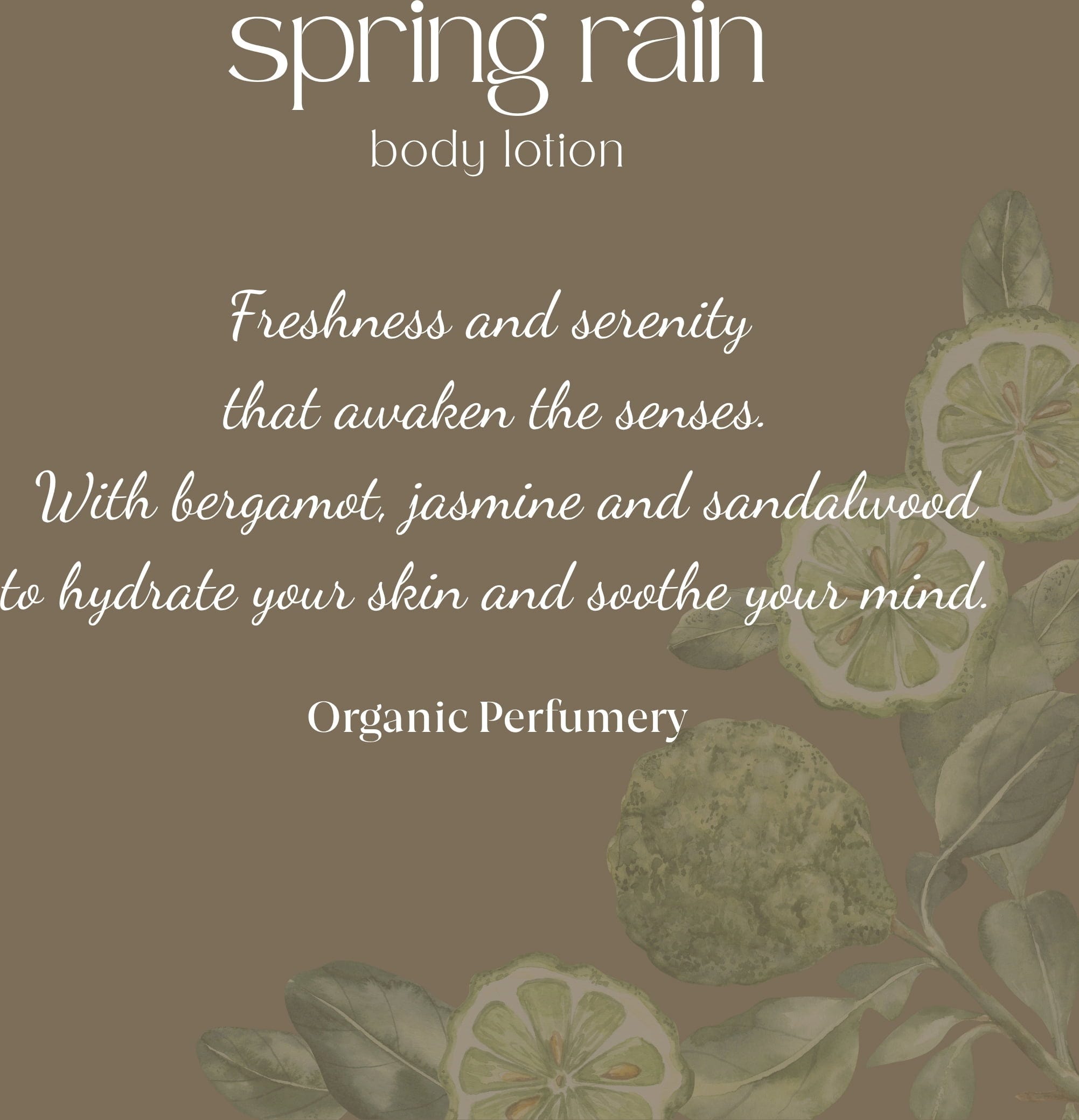 A Tavaszi eső bioorganikus testápoló aromái csak tiszta élvezetként írhatók le – mint a tavaszi eső illata. Ugyanakkor a kiváló minőségű összetétel kényezteti a bőrt és intenzív hidratálást biztosít neki.
