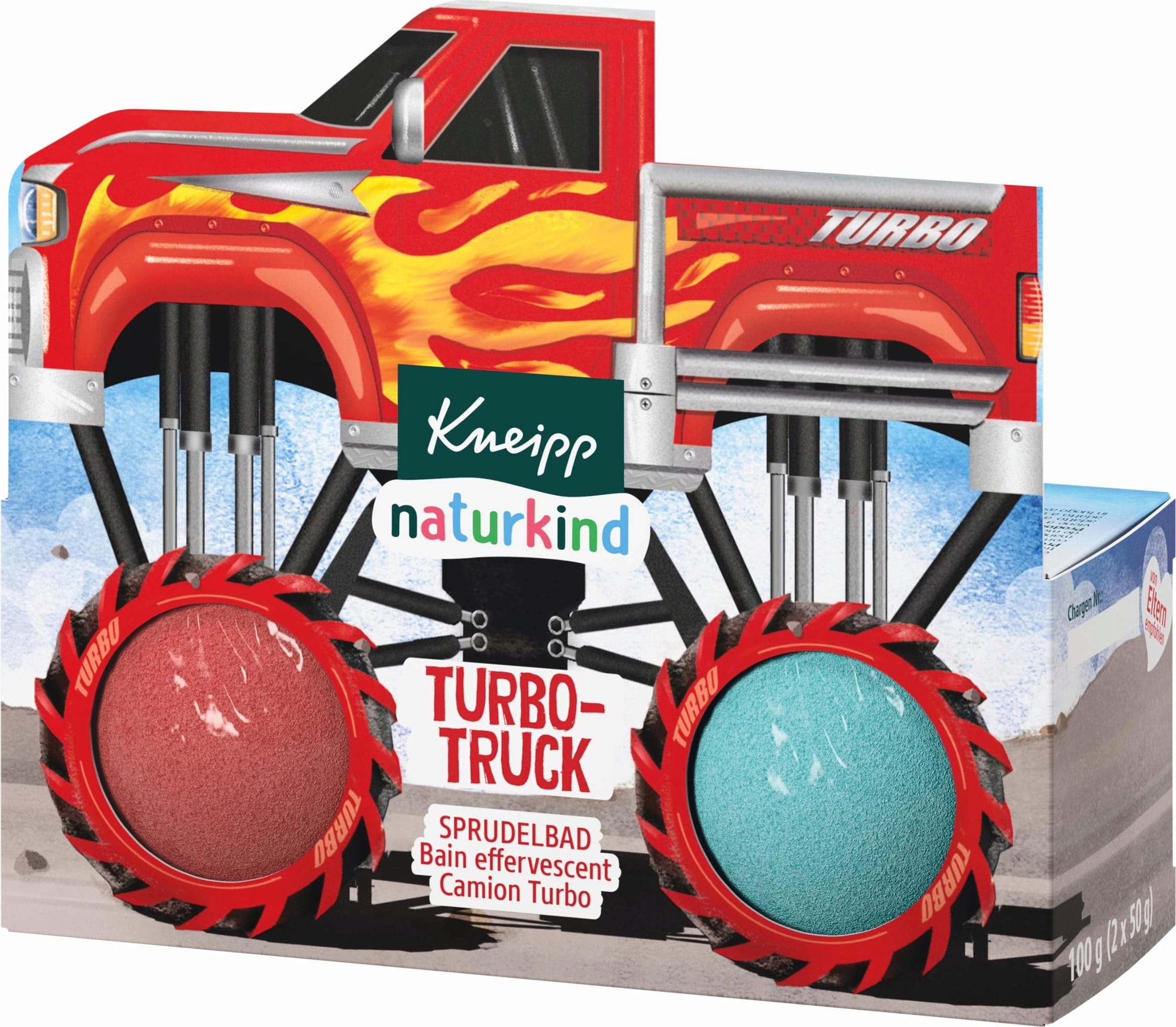 A Kneipp naturkind Turbo-Truck habfürdő akciódús fürdőzési élményt nyújt egyenesen a fürdőkádba, és felragyogtatja a gyerekek szemét. Meleg vízbe dobva a fürdőbombák pezsegni kezdenek, pirosra vagy kékre színezik a vizet, és gyümölcsös fekete ribizli illatot árasztanak. Az avokádó- és szőlőmagolaj táplálja a finom gyermekbőrt, és segíthet megvédeni a kiszáradástól. A habfürdőt kifejezetten 3 éves és annál idősebb gyermekek számára fejlesztették ki.