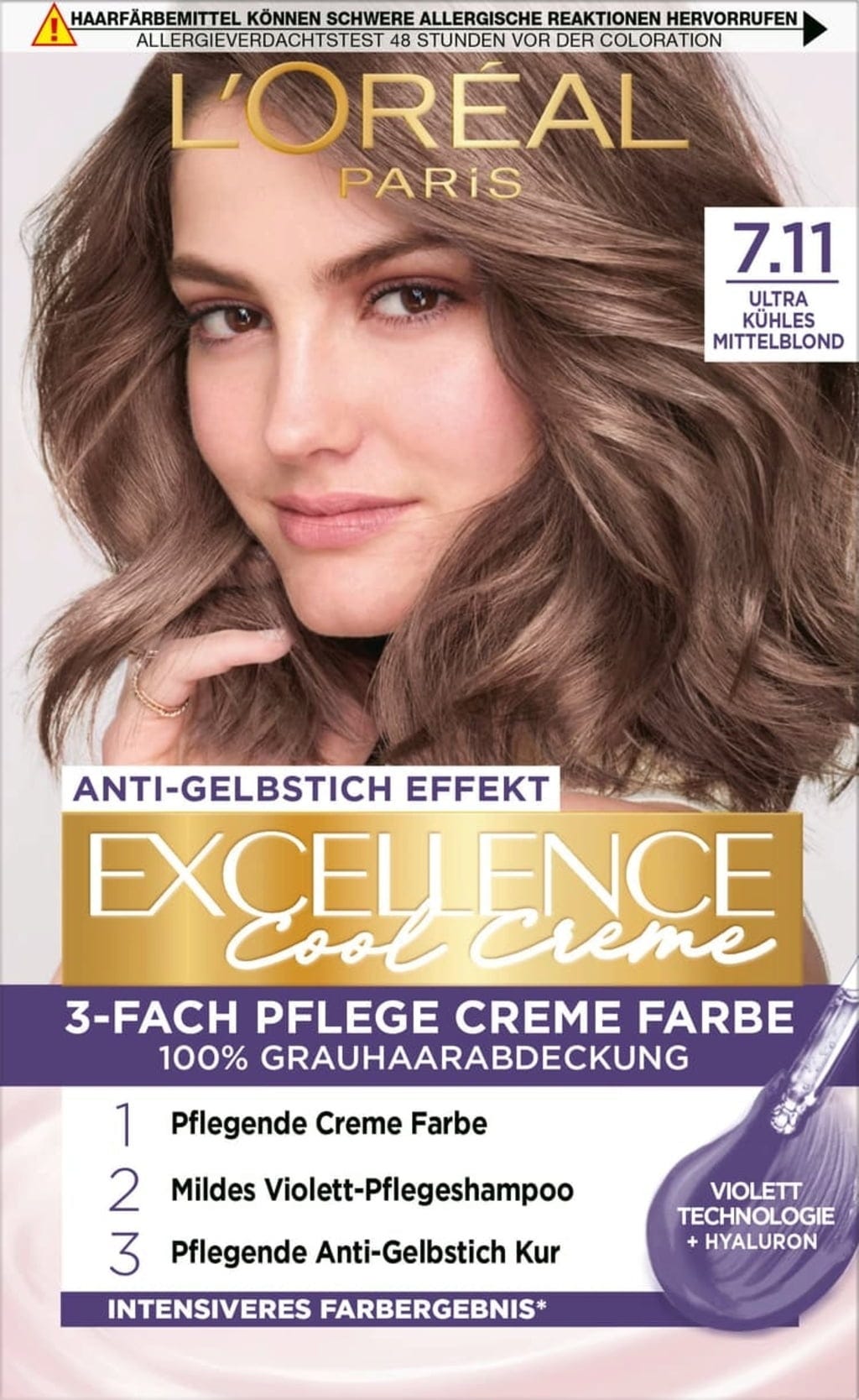 Vásárlói vélemény magyar nyelven: L'ORÉAL PARIS Excellence Cool Creme hajfesték - 7.11 Ultra hűvös középszőke