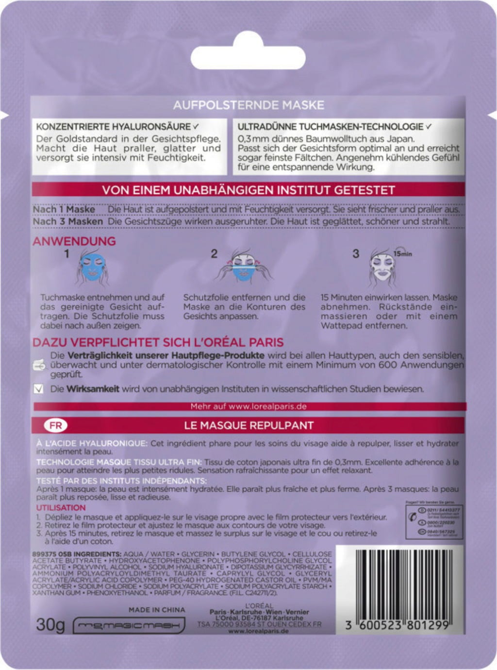 A REVITALIFT Filler feltöltő maszk egy japán pamutból készült, ultravékony kendőből áll, amely optimálisan simul a kontúrokhoz és jól tapad. Intenzíven hidratálja, kisimítja és feltölti a bőrt.