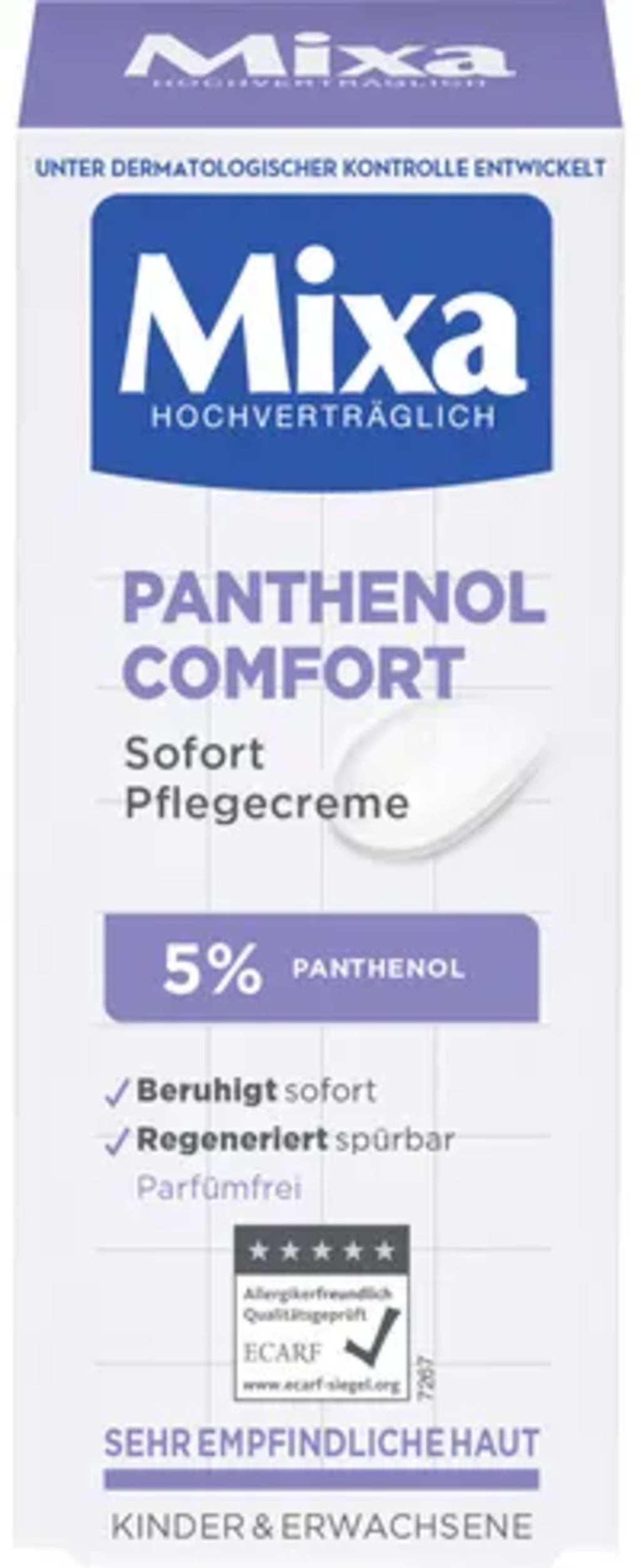 A Mixa Panthenol Comfort azonnali ápoló krém egy sokoldalú, univerzális krém, amelyet kifejezetten a nagyon érzékeny bőr ápolására fejlesztettek ki. Panthenol-tartalmával intenzív hidratálást biztosít. Segít a szárazságra hajlamos bőrfelületek gyors regenerálásában és ápolásában. A parabén- és parfümmentes krém gyorsan felszívódik, és kellemes, nem zsíros bőrérzetet hagy maga után.