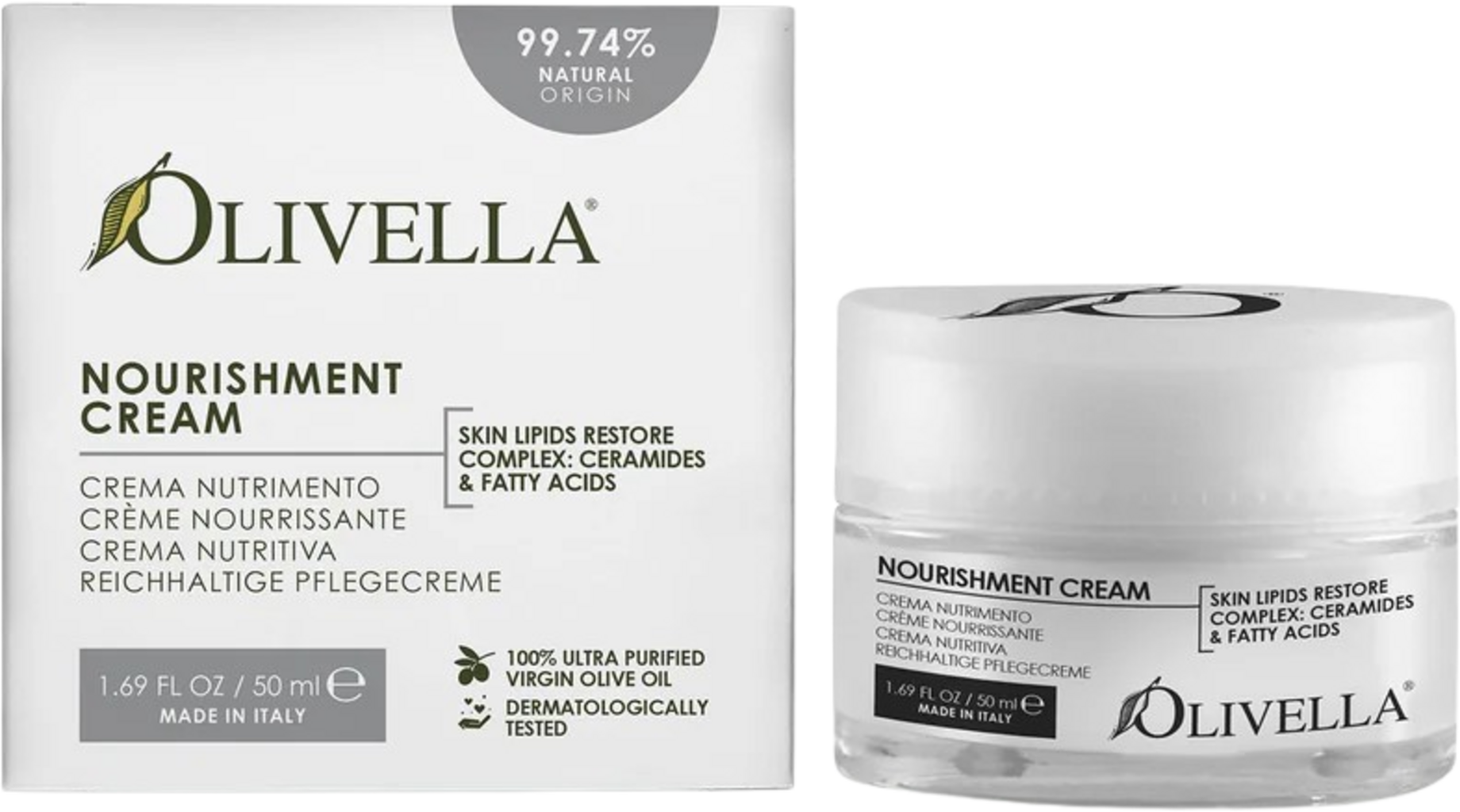 Aqua, Olea Europaea (Olive) Fruit Oil, Pentylene Glycol[2], Glyceryl Stearate Se, Cetearylalcohol, Glycerin, Cetearyl Olivate, Hydrogenated Vegetable Oil, Prunus Amygdalus Dulcis (Sweet Almond) Oil, Sorbitan Olivate, Olea Europaea (Olive) Oil Unsaponifiables, Olea Europaea Leaf, Borago Officinalis (Borage) Seed Oil[1], Oryza Sativa (Rice) Bran Oil, Vitis Vinifera Seed Oil, Argania Spinosa (Argan) Kernel Oil[1], Oenothera Biennis (Evening Primrose) Oil[1], Tocopherol (Vitamin E), Ascorbyl Palmitate, Parfum, Xanthan Gum, Lecithin, Eugenol, Citronellol, Benzyl Salicylate, Citric Acid