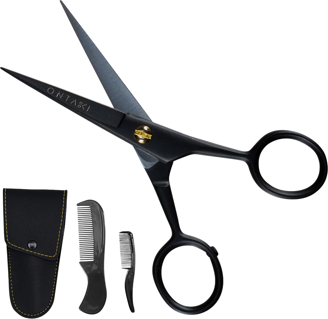 ONTAKI Premium Beard & Mustache Scissors - German Steel - black - 5" + 2 combs & carrying pouch