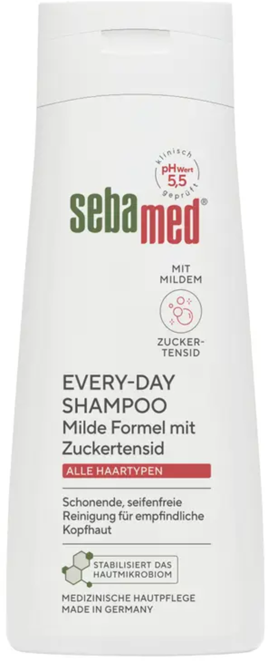 Egy sampon mindennapos hajmosáshoz - a sebamed Every-Day sampon lágyan és gyengéden tisztítja a hajat és a fejbőrt a cukortenzideket tartalmazó enyhe formulának köszönhetően. Egy speciálisan kifejlesztett tenzid-kombináció megvédheti a hajat és a fejbőrt a kiszáradástól. Az 5,5-es pH-érték szintén támogatja a bőrvédőgát kialakulását. Ezenkívül a sampon nagyobb volument és gyönyörű fényt kölcsönözhet a haj számára. A formula mikroműanyagoktól mentes.