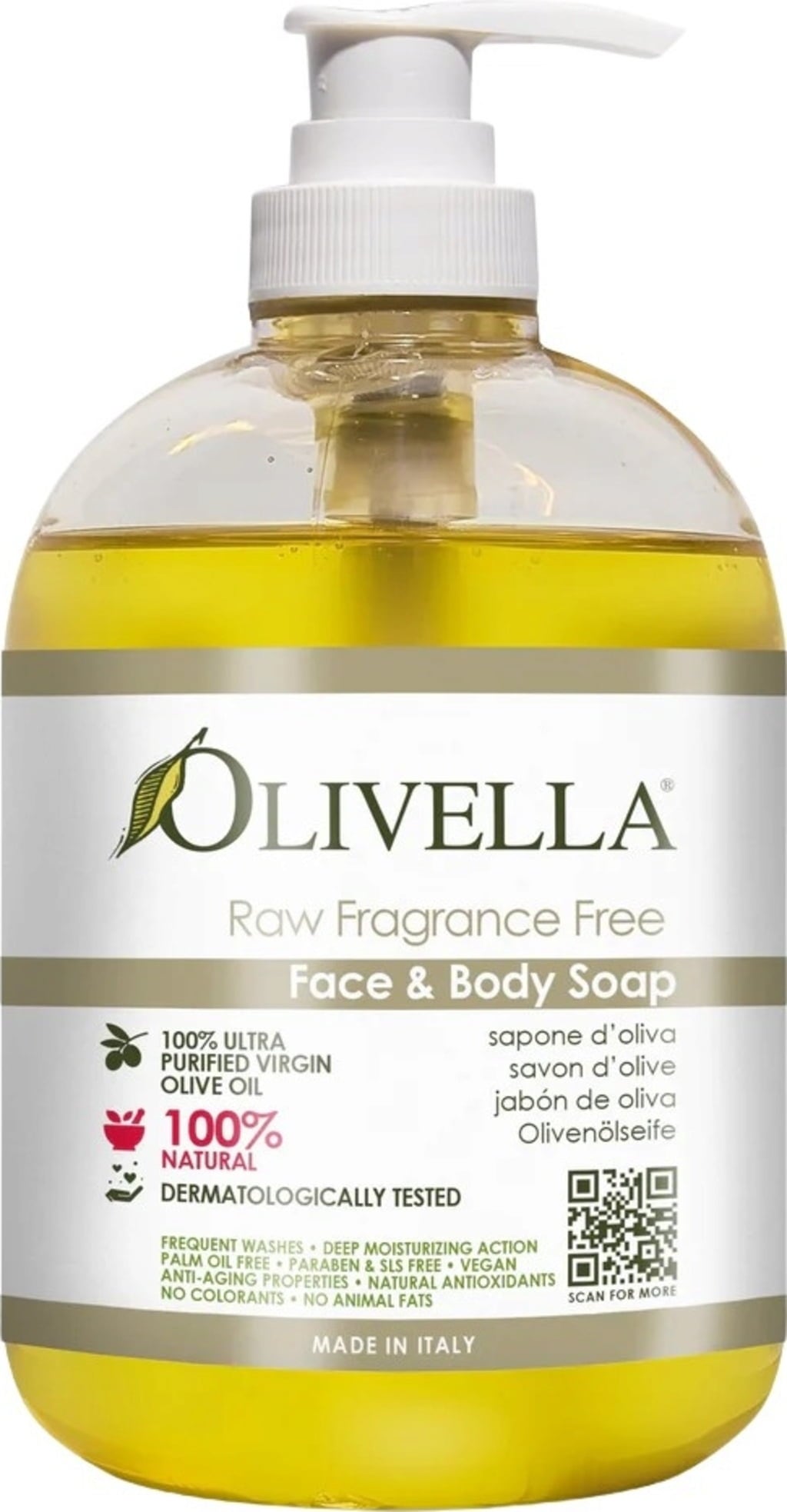 Ez az Olivella folyékony szappan nem tartalmaz illatanyagokat vagy szintetikus adalékanyagokat, és különösen gyengéden tisztítja a bőrt. A szűz olívaolajon alapuló formulája enyhe, tápláló tisztító élményt nyújt, amely puhává és rugalmassá teszi a bőrt. Ideális érzékeny bőrre.