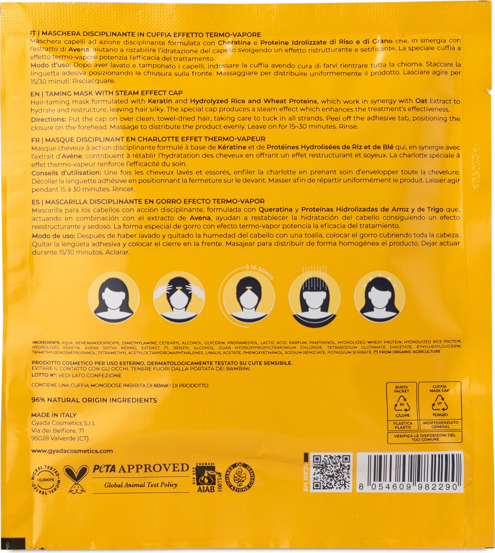 Ez a búza- és rizsfehérjét, zab kivonatot, keratint és pantenolt tartalmazó kendőmaszk optimális hidratálást biztosít, valamint kiváló rakoncátlan haj esetén. Javítja a fésülhetőséget anélkül, hogy megterhelné a hajat. Ezenkívül a kendőmaszk melegítő hatása által javítja a hatóanyagok felszívódását, ezáltal intenzív ápolást biztosítva.