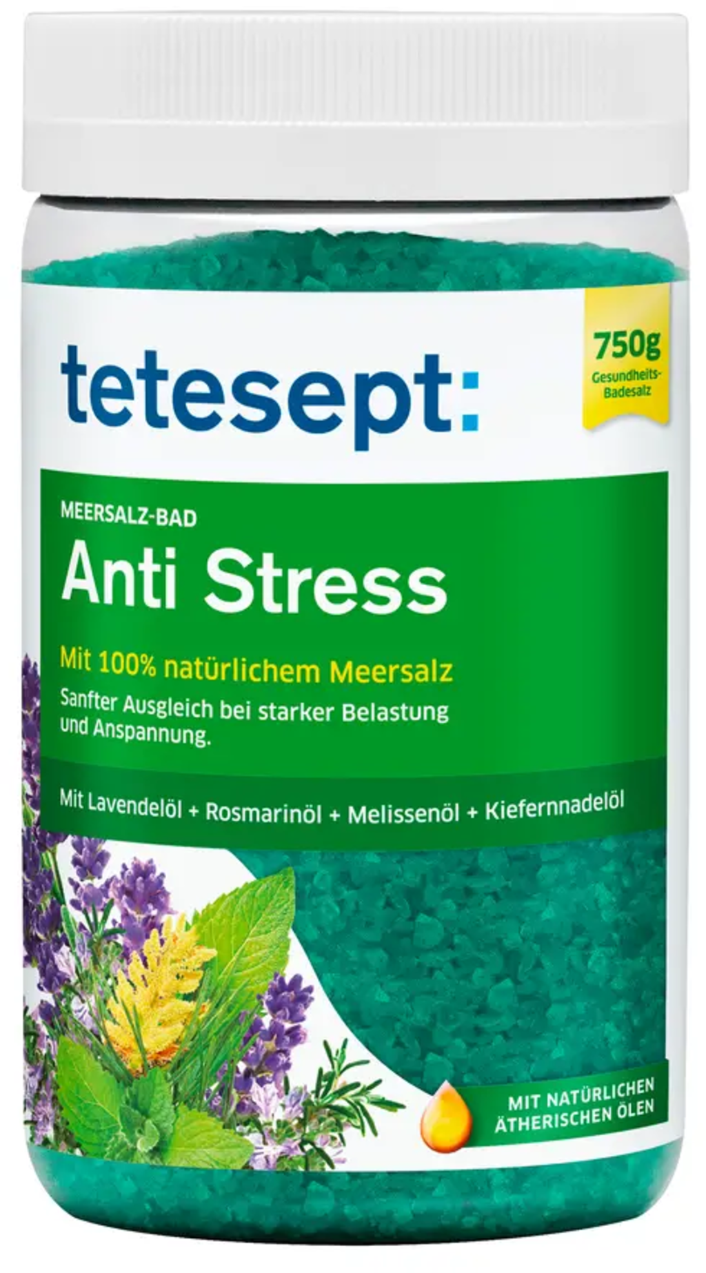 A mindennapok elég stresszesek – kényeztesse magát egy jól megérdemelt pihenéssel a tetesept "Anti-stressz" tengeri fürdősóval.