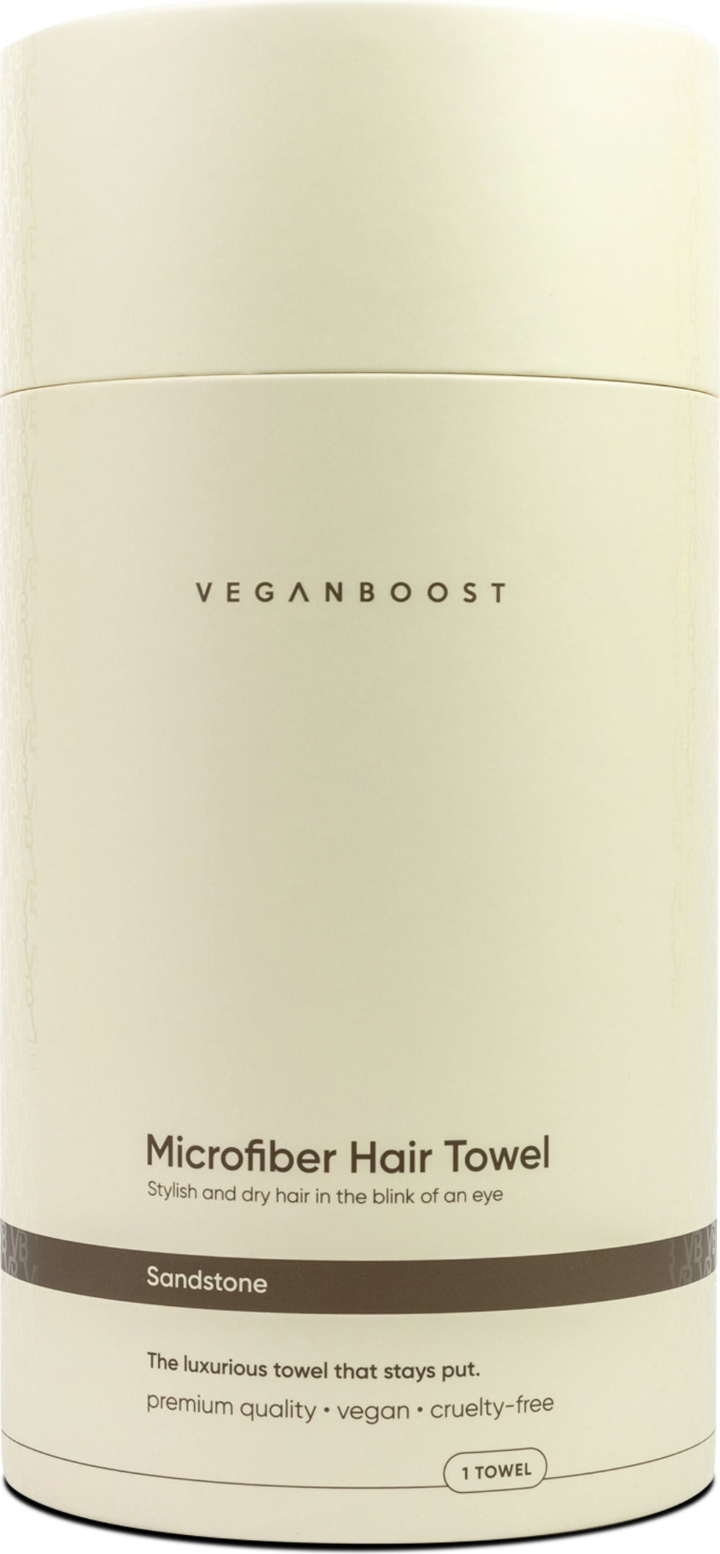 A Veganboost Hajtörölköző mikroszálas anyagból készült, amely gyorsan és hatékonyan szárítja a hajat. A poliészter és poliamid keveréke extra puhává teszi a törölközőt, minimalizálja a súrlódást, így védi a hajat a károsodástól. A fej hátsó részén található huroknak köszönhetően a törölköző könnyen feltekerhető és turbánként rögzíthető.