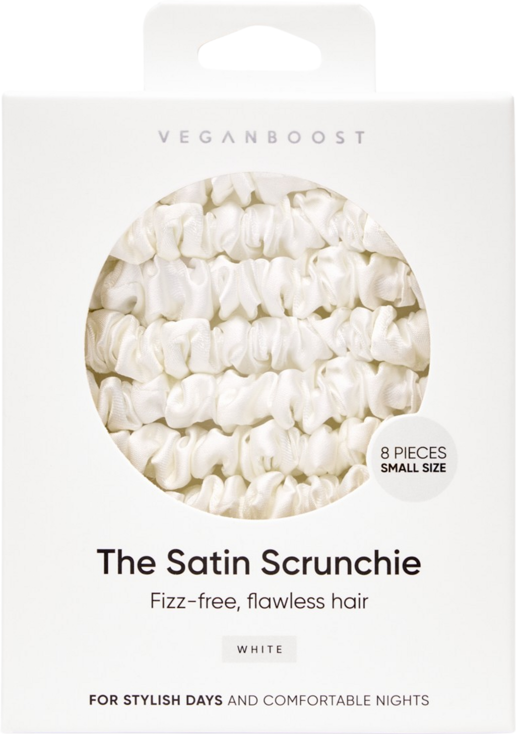 Veganboost Szatén Scrunchie, kis méret, Fehér (8 darab)