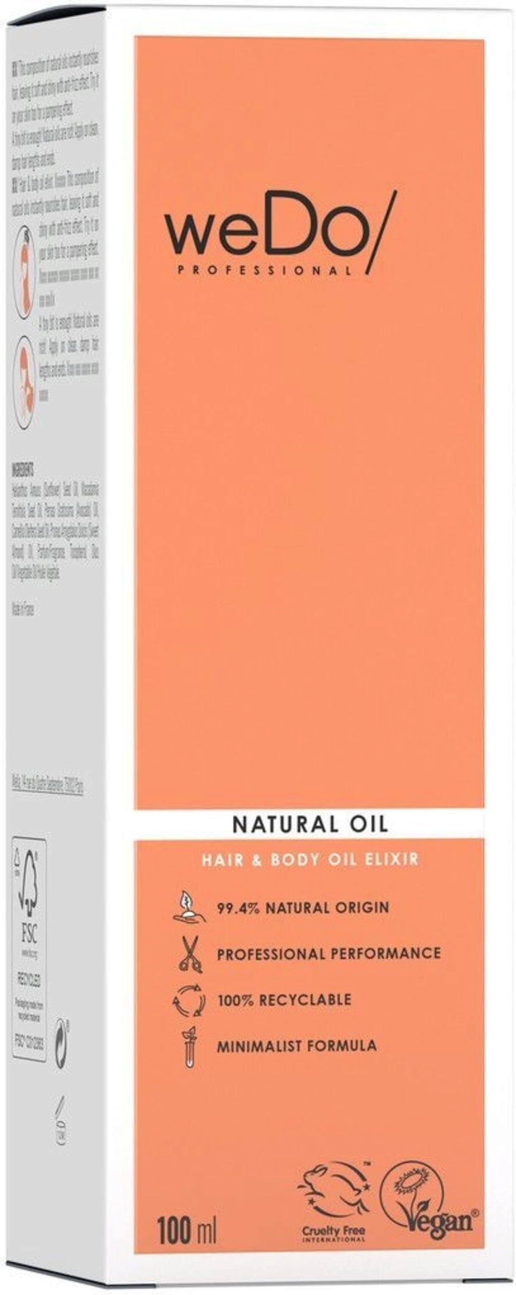 A weDo Professional természetes 2 az 1-ben haj- és testolaja nemcsak intenzíven ápolt és azonnal kisimult hajszerkezetet biztosít, hanem a bőrre felvíve különleges kényeztető hatást is kifejt.