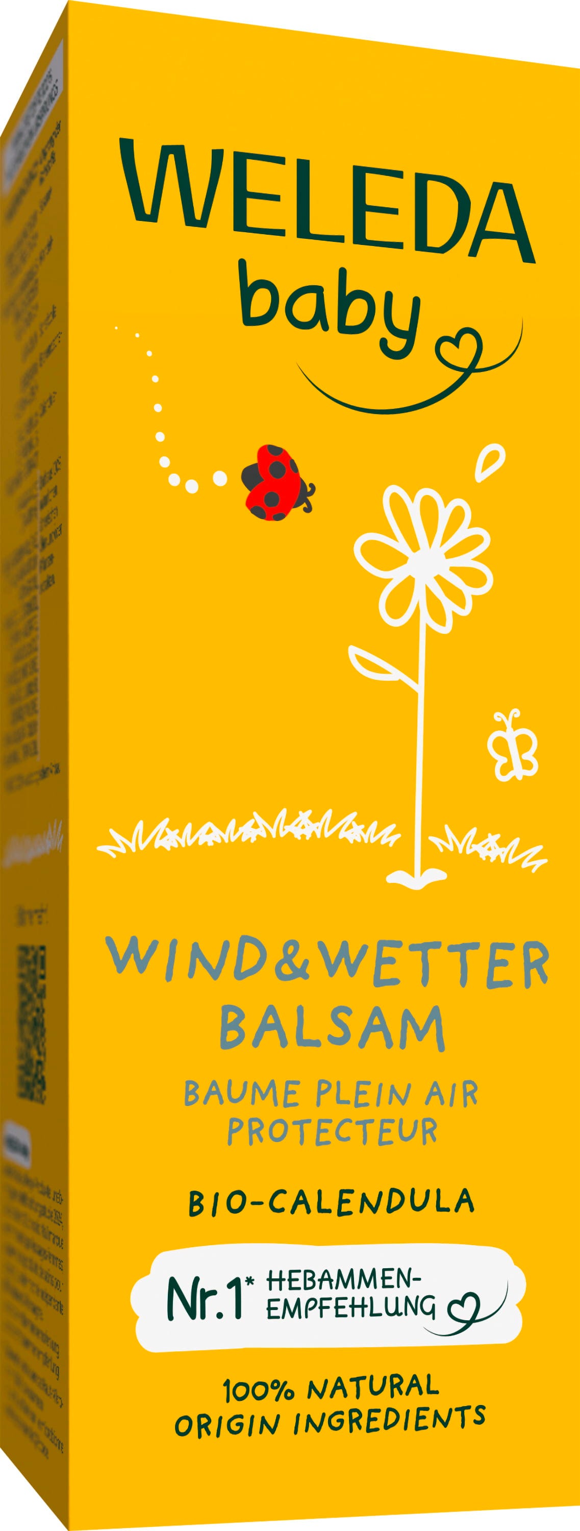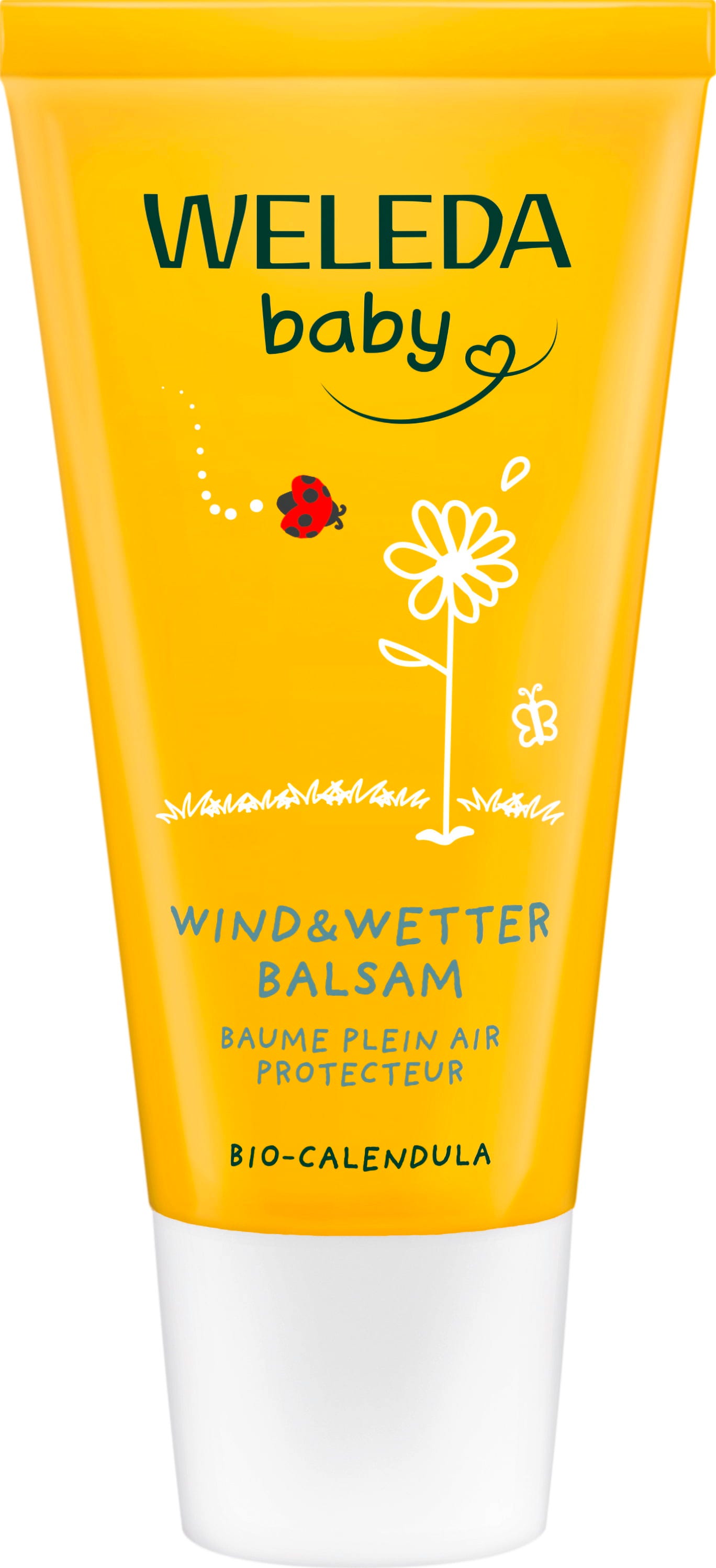 Esős és havas idő esetén a baba és a gyermek bőrének különösen intenzív védelemre van szüksége. A gazdag Weleda Körömvirág szél és időjárás balzsam finom védi az arcbőrt és a kis kezeket a hideg, szél és a durva időjárási viszonyok ellen. A tiszta méhviasz és gyapjúviasz egy természetes védőréteget képez anélkül, hogy a bőrlégzést akadályozná. Az értékes mandulaolaj táplálja a száraz és sérült bőrt, valamint az ellenőrzött biológiai kertészetből származó körömvirág gyógynövény kivonat nyugtatja a bőrt. A vízmentes Weleda Körömvirág szél és időjárás balzsam nagyon gazdaságosan használható, és szintén ideális érzékeny bőrű felnőttek számára is.