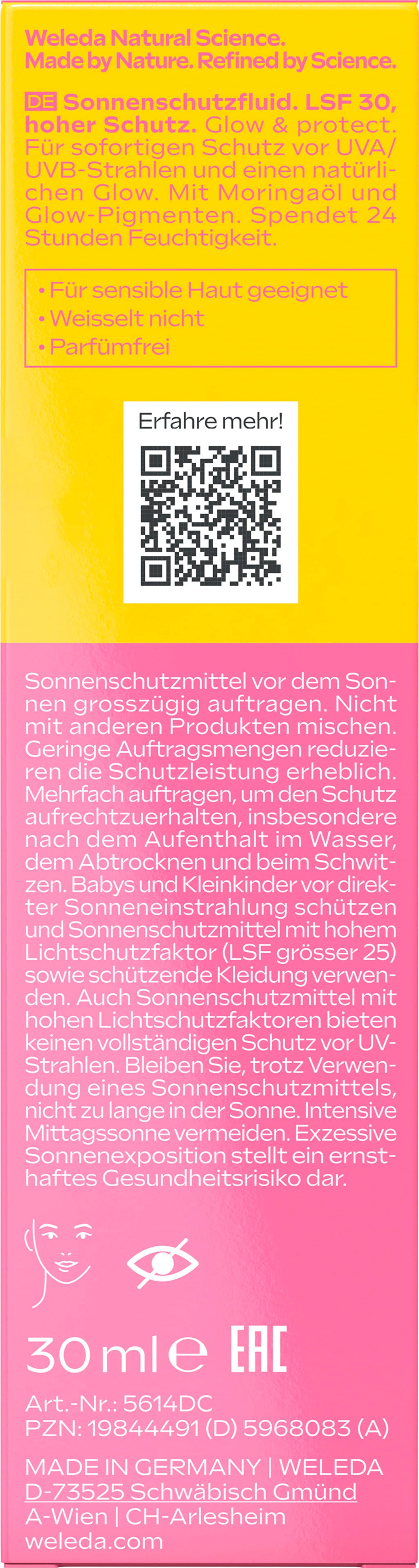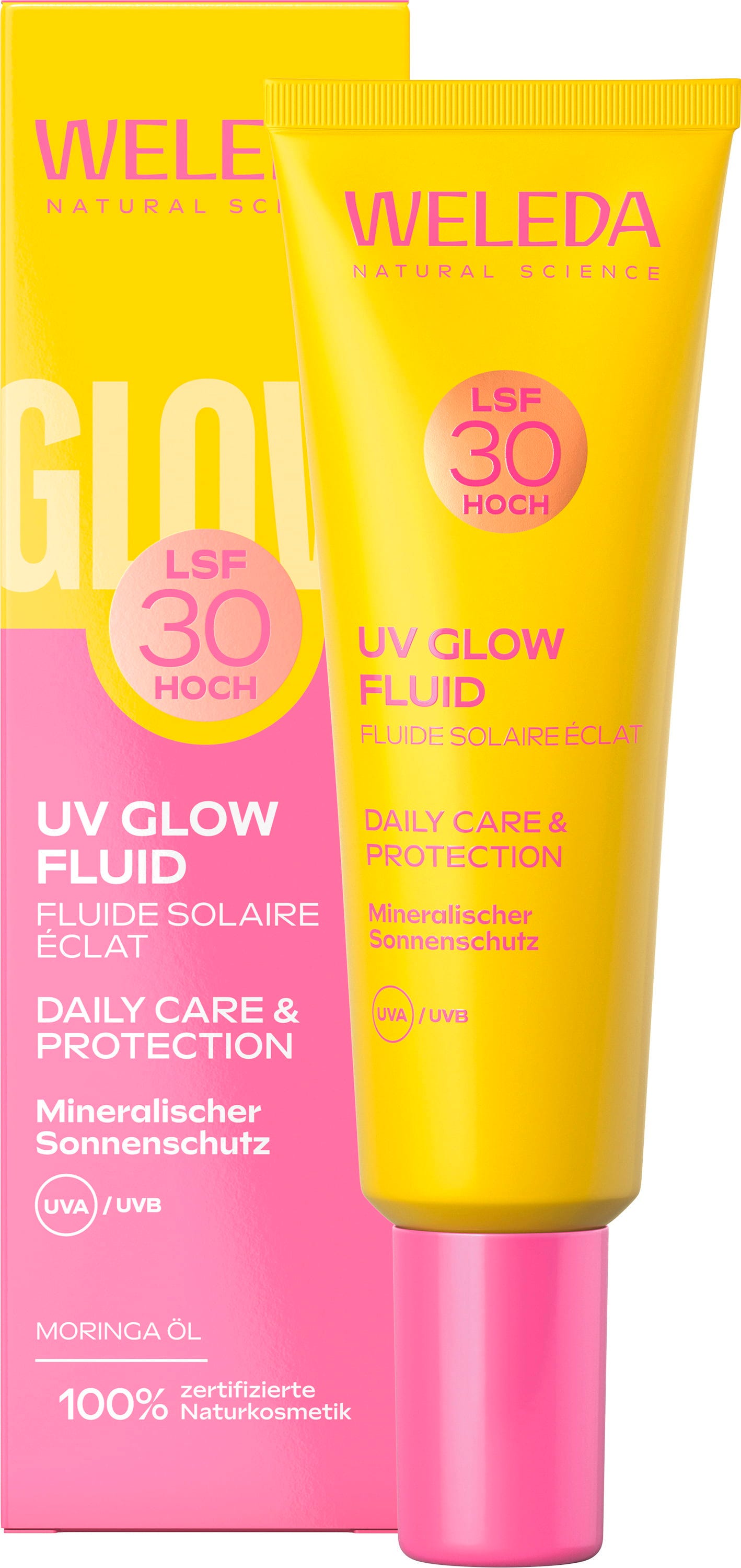 Az UV Glow Fluid egy magas védelemmel ellátott naptej. A tisztán ásványi szűrők kiegyensúlyozott UVA/UVB védelmet nyújtanak, míg a formulában található ragyogást fokozó pigmentek ragyogó arcszínt biztosítanak. A folyadék hosszan tartó hidratálást is biztosít.