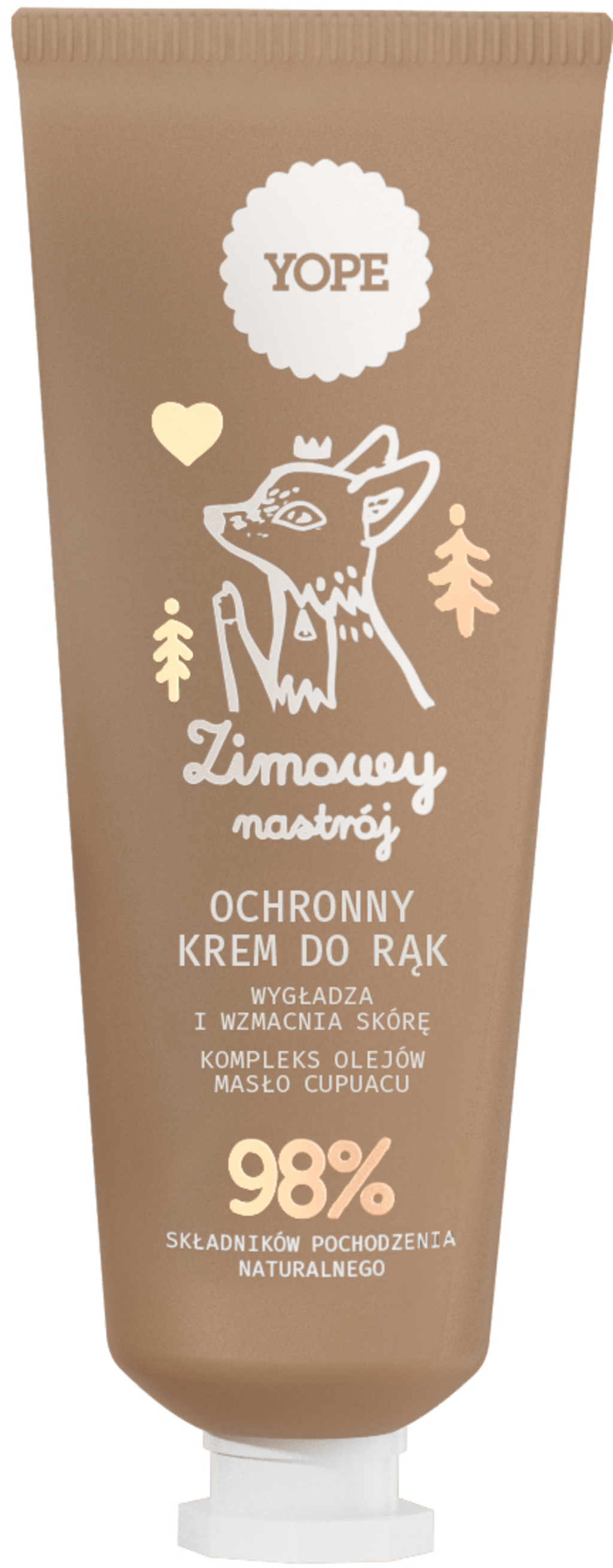 Kezeid egy extra adag ápolásra vágynak? A YOPE Winter Mood kézkrémje tökéletes választás. A moringa olaj, az argánolaj, a shea vaj és a cupuaçu vaj simává varázsolja a bőrt és intenzív ápolást biztosít, míg a borostyán és a cédrusfa meleg illata egész nap elkísér.
